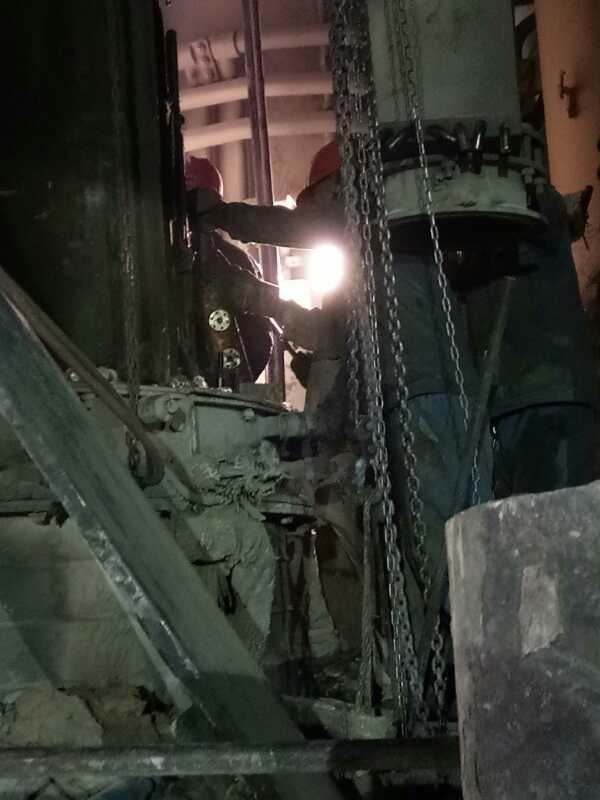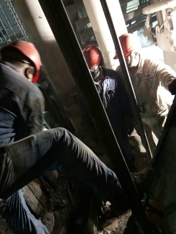 高溫酷暑難不倒檢修將士,他們采取早上提前上班,下午錯開高溫時段,工作持續(xù)至晚上的錯峰措施,有條不紊地進行拆除更換工作。盡管如此,大家仍然要承受高溫酷暑的考驗,現(xiàn)場道路上設(shè)備轟鳴,管廊架上焊割火花飛濺,員工們揮汗如雨,激情四射,呈現(xiàn)一片催人奮進、如火如荼的檢修景象。拆除下料柱、接觸元件、處理料面等檢修工作緊張有序的進行著公司領(lǐng)導(dǎo)率先垂范堅守第一線。