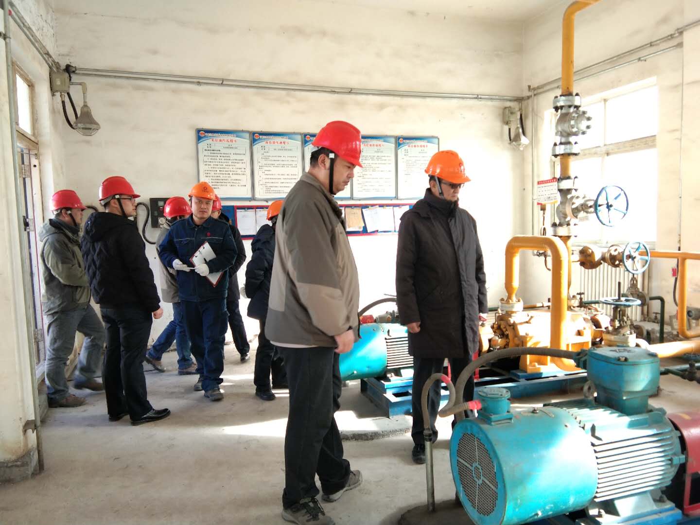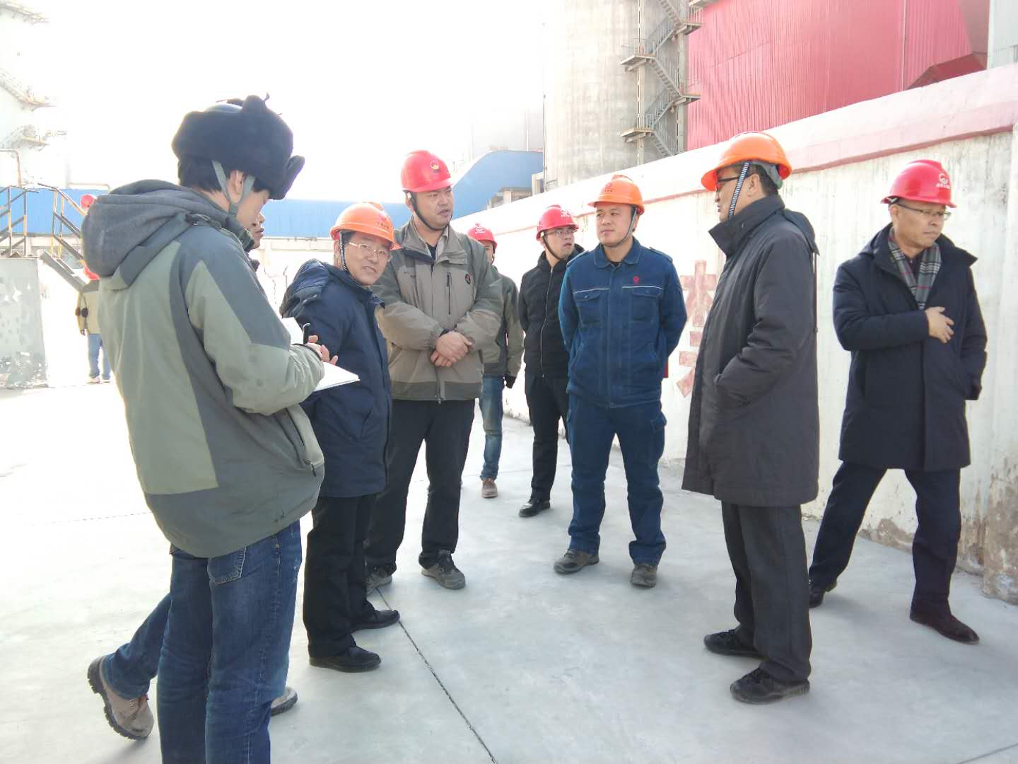 由原州區(qū)安監(jiān)與環(huán)保局副局長海濱帶隊,鹽業(yè)公司副經(jīng)理張建東等陪同,對我公司燃油泵房、氨水罐區(qū)、酸堿罐區(qū)等關(guān)鍵裝置、重點部位及檢維修現(xiàn)場進行了實地查看與指導(dǎo)。