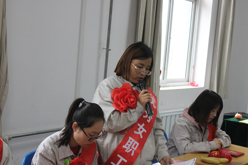 表彰了“巾幗文明示范崗”、“三八紅旗手”、“優(yōu)秀女職工”,并頒發(fā)了榮譽證書。隨后“三八紅旗手”代表劉芳芳、女職工代表李雪分別進行了發(fā)言。