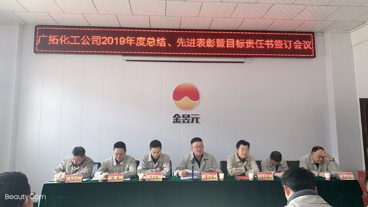 春節(jié)前期,廣拓能源化工公司組織召開2019年度工作總結(jié)、先進表彰暨目標責任書簽訂會議。本次會議由公司副總經(jīng)理盧志銀主持,化工公司總經(jīng)理、副總經(jīng)理、安全總監(jiān)、副總工程師出席,25名先進集體、個人及70余名職工代表參加。