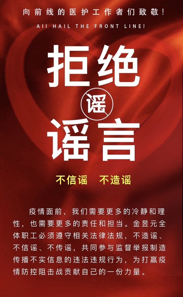 自新型冠狀病毒疫情阻擊戰(zhàn)打響以來(lái),金昱元全體職工團(tuán)結(jié)一心,眾志成城、抗擊疫情,一股股愛(ài)的暖流匯聚成了打贏疫情防控阻擊戰(zhàn)的強(qiáng)大力量。