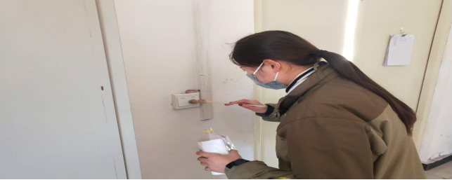 擦拭操作臺(tái)、門把手,及時(shí)進(jìn)行衛(wèi)生消毒