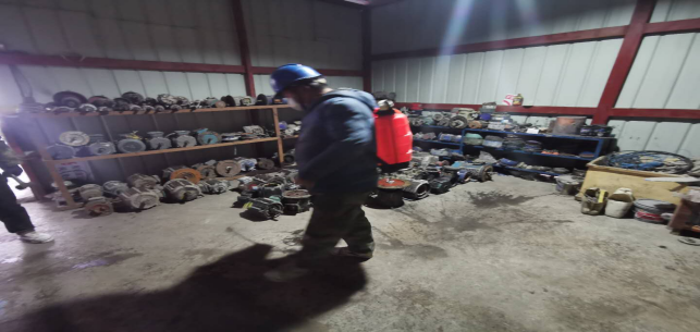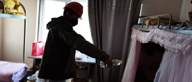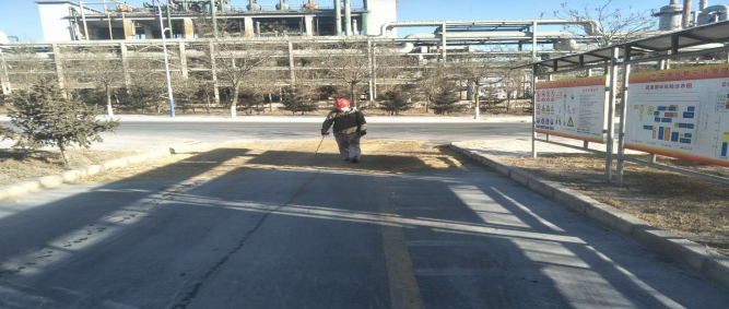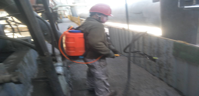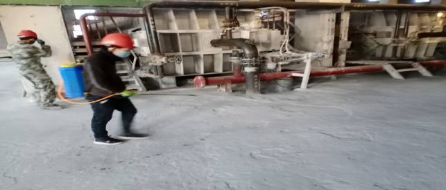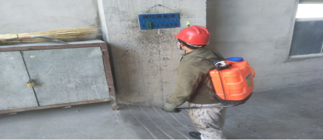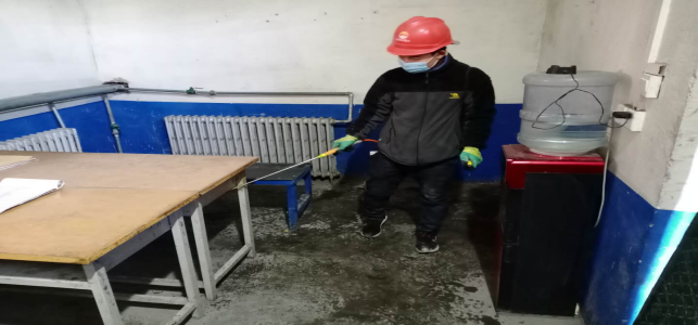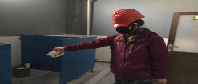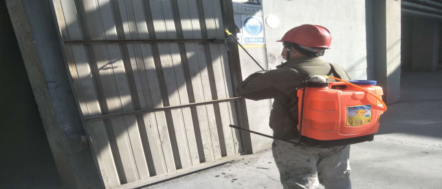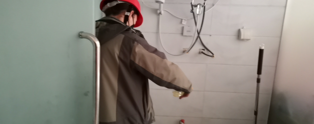 對(duì)廠區(qū)衛(wèi)生間消毒。