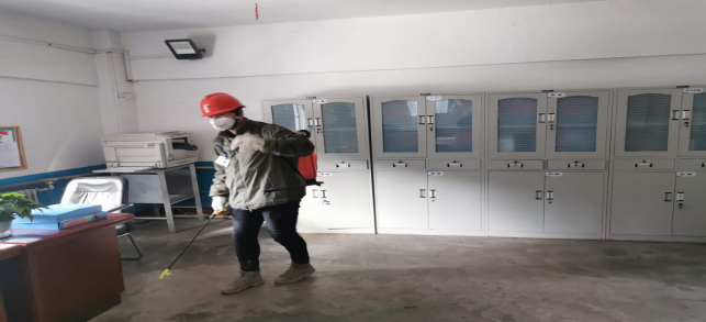 在崗位辦公室消毒。