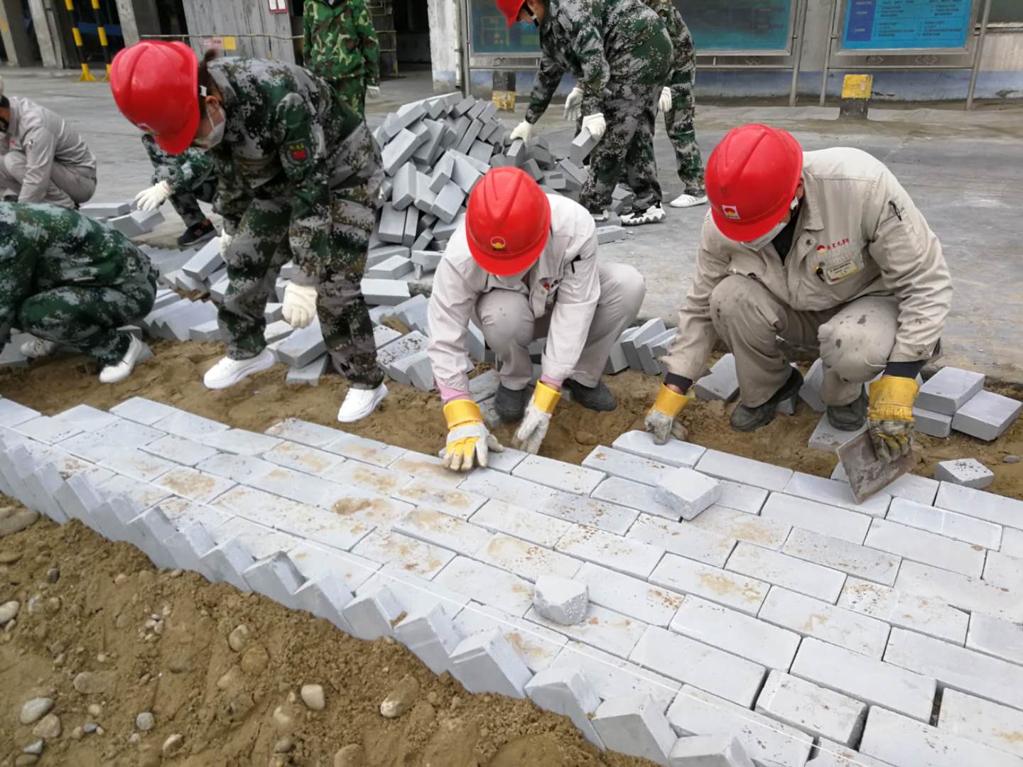 3月23日早上8:30分,資源再生公司組織所有日勤人員到成品裝置東側綠化帶內勞動。說是勞動,其實就是用青磚將綠化帶旁邊多余的土地鋪成平整的小路。雖然大家不是專業的泥瓦匠,也沒有專業的工具,但大家想方設法將青磚鋪的平整而又美麗。說說笑笑中手下的工作一點兒也沒有落下。時間在忙碌中悄悄溜走,大約一個小時,原來的沙土地變成了平整的磚地,遠遠看去,青磚鋪成的小路干凈而又整齊。