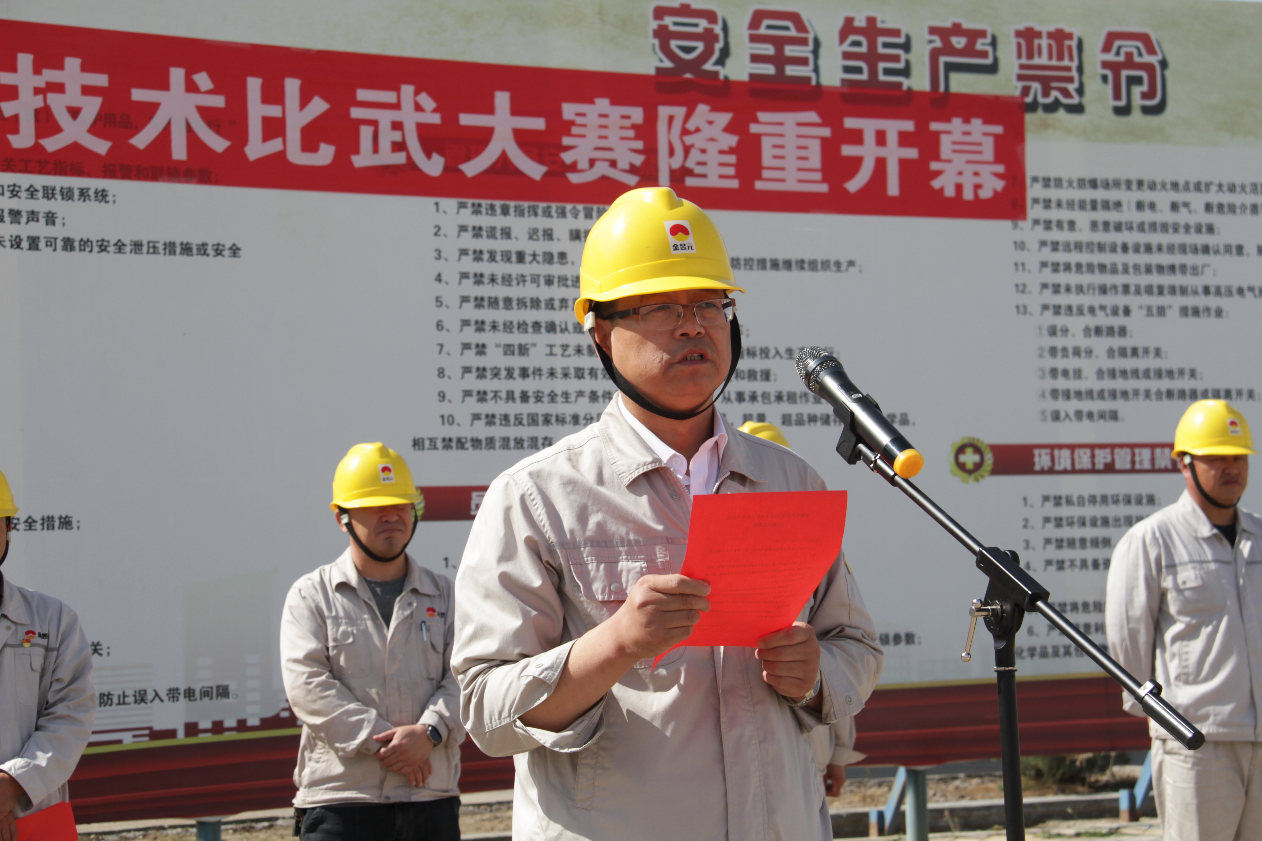 9月16日,由能源化學公司主辦的“2020年度職工技術(shù)比賽”活動開幕式在公司廣場舉行,公司總經(jīng)理王華、副總經(jīng)理范進、俞峰,總經(jīng)理助理馬澤、副總工程師商俊平和集團公司工會副主席李新、片區(qū)總經(jīng)理助理丁青林出席了開幕式。公司各科室、裝置負責人,各裝置代表隊共100余人參加。開幕式由公司黨支部書記吳建明主持。
