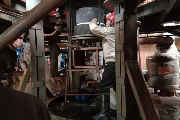 燈頭是蒸汽爐最核心的部件,它就如同蒸汽爐的“心臟”,保證著蒸汽爐的安全平穩(wěn)運行。由于燈頭是石英材質(zhì),不能有任何碰撞。有著二十年檢修工作經(jīng)驗沈培銀老師傅,像一名“將軍”一樣,指揮著大家拆燈頭,滿身的油污,像軍功章一樣掛在他的胸前。只見他拿來三根全絲螺桿,均勻地固定在燈頭支座上,隨著三只螺母的松動,燈頭就開始慢慢地向下移動,為了保證燈頭的平穩(wěn)下落,三個人必須同時松動螺母,這需要高度默契地配合。 沈培銀老師傅不緊不慢地松動著螺母,并時刻提醒著其他兩個人的進度。汗水早已濕透了三人的衣服,裹挾著污漬的汗水不停地順著他們的臉頰滴落。愛開玩笑的同事,不失時機地說個笑話,逗得大家哈哈大笑,身上的疲憊感頓時消減幾分。