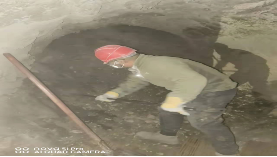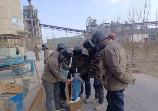 檢修人員鉆進預熱器檢查門子是檢修預熱器管道的“必經之路”,也是支撐徹底完成預熱器檢修的關鍵環節。因為時間緊、任務重,為了不影響檢修進度,檢修人員常常進去干干凈凈,出來時灰土灰臉,不得不輪番上陣,從上到下,完成結皮清理。他們四人一組,從安全監護到技術指導,干一干,歇一歇,接著再繼續……即便是當前零下十幾度,也能干出一身汗,喝口水的功夫,滲出的汗液就能結成冰。