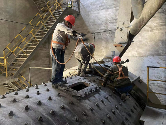 為保證水泥2024年系統(tǒng)高效穩(wěn)定連續(xù)運(yùn)行,各項(xiàng)計(jì)劃性檢修正扎實(shí)有序地推進(jìn)著。北方的冬天,時(shí)而風(fēng)刀霜?jiǎng)Γ瑫r(shí)而白雪皚皚,惡劣的氣候也考驗(yàn)著室外檢修人員的耐力和毅力。