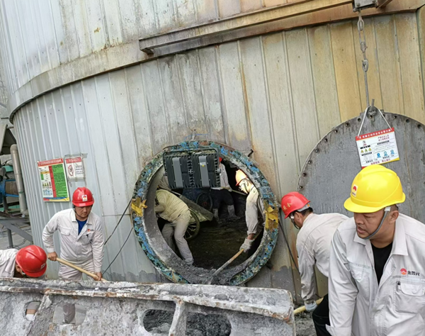 人在專注干一件事的時(shí)候是最帥氣的,盡管他們身上滿是油污,也掩蓋不住他們認(rèn)真、擔(dān)當(dāng)和富有責(zé)任感的品質(zhì)。他們把每一次檢修都當(dāng)成一次全新的挑戰(zhàn),把每一次檢修都當(dāng)做一次經(jīng)驗(yàn)的積累,一張張布滿油污、灰塵的面孔,綻放出最為清澈和動(dòng)容的笑容。你看,脫硫塔檢修現(xiàn)場(chǎng),他們?cè)跐M是泥水的脫硫塔內(nèi)來來回回奔跑了無數(shù)次,泥污沾滿了全身每一個(gè)地方,不知是汗水還是泥水打濕了衣服。他們干活不分你我、不惜力氣、相互配合,安全高效地完成了料液清理工作,為脫硫塔消漏、防腐做好了準(zhǔn)備工作。