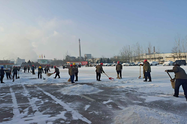 在除雪過(guò)程中,領(lǐng)導(dǎo)們始終與員工們并肩作戰(zhàn),他們不僅是指揮者,更是參與者。當(dāng)遇到積雪結(jié)冰難以清理時(shí),領(lǐng)導(dǎo)們與員工們共同商議對(duì)策,現(xiàn)場(chǎng)調(diào)配資源。他們親自上陣,與員工們一起喊著口號(hào),齊心協(xié)力將積雪堆攻克。
