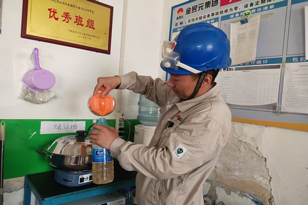 為了讓清涼不間斷供應(yīng),能源化學(xué)公司還在各個裝置的維修室設(shè)立了固定的“清涼補給站”,配備保溫桶、一次性水杯,安排專人負(fù)責(zé)續(xù)水。同時,根據(jù)維修人員的工作時間靈活調(diào)整供應(yīng)時段,確保大家在作業(yè)間隙都能隨時喝上清涼飲品。此外,各個裝置還通過班前會、微信群等渠道,向維修人員普及防暑降溫知識,提醒大家合理安排作業(yè)時間,注意勞逸結(jié)合。