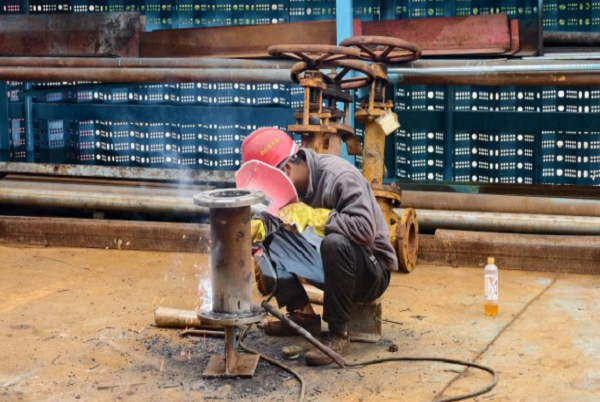 除了檢修泵,張強(qiáng)的焊接技術(shù)更是裝置里出了名的“一絕”。檢修期間,維修班的院子里,焊槍迸發(fā)的火花格外耀眼。維修班班長(zhǎng)張強(qiáng)正半蹲在設(shè)備旁,專(zhuān)注地焊接一臺(tái)老舊閥門(mén),隨著“滋滋”的聲響,焊槍穩(wěn)穩(wěn)落在密封面上,張強(qiáng)手腕微轉(zhuǎn),焊錫均勻地鋪滿(mǎn)磨損處,熔池大小始終控制得恰到好處。焊接到關(guān)鍵接口時(shí),他屏住呼吸,眼神緊緊鎖定焊點(diǎn),生怕一絲偏差影響密封效果。火星在他手邊飛濺,他卻始終盯著熔池,直到最后一道焊縫完成。經(jīng)過(guò)壓力測(cè)試,焊縫完全符合標(biāo)準(zhǔn),沒(méi)有一絲滲漏。“強(qiáng)哥的焊口,就是質(zhì)量的‘保證書(shū)’。”設(shè)備技術(shù)員高云翔提起這事,至今仍贊不絕口。