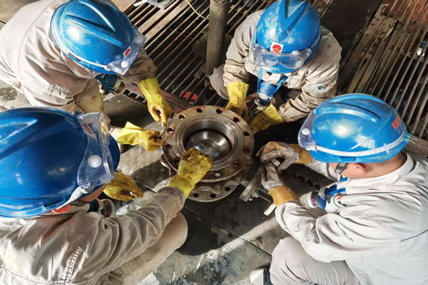 大型球閥的檢修是一項對精度要求極高的工作。從拆解閥體、檢查閥芯,到更換密封件、研磨密封面,每一個步驟都容不得半點馬虎。在高溫、高噪的現(xiàn)場環(huán)境中,檢修人員不僅要對抗體力消耗,更要保持高度的專業(yè)嚴(yán)謹(jǐn)。為了確保密封性能達(dá)標(biāo),他們反復(fù)測量密封面的平面度,用細(xì)砂紙手工研磨,直到達(dá)到工藝標(biāo)準(zhǔn);在回裝螺栓時,嚴(yán)格按照對角順序和規(guī)定力矩緊固,避免因受力不均導(dǎo)致泄漏。作業(yè)中,有人佩戴著防護(hù)眼鏡與防毒面具,這既是對操作規(guī)程的遵守,更是對自身安全與生產(chǎn)責(zé)任的雙重?fù)?dān)當(dāng)。