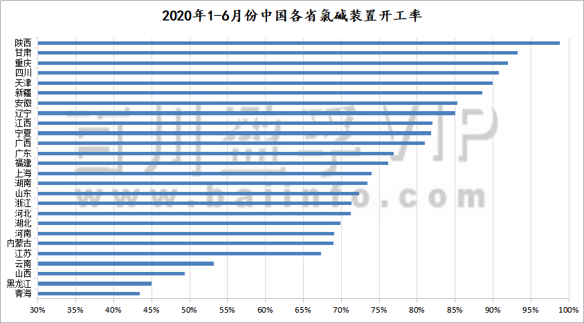 我們分析,開工負(fù)荷下調(diào)的原因:2月份由于國際公共衛(wèi)生事件影響,道路運(yùn)輸不暢,原材料到廠難、液氯出貨壓力大等問題制約了堿廠開工,其中最為明顯的是湖北省燒堿裝置開工率僅2-3成,2月份中國燒堿平均開工率跌至65.56%;4-6月份國際疫情影響發(fā)酵,大宗商品產(chǎn)業(yè)鏈上各品種的進(jìn)出口貿(mào)易受挫,燒堿難以獨(dú)善其身,銷售與成本壓力使得行業(yè)整體開工率下滑。
