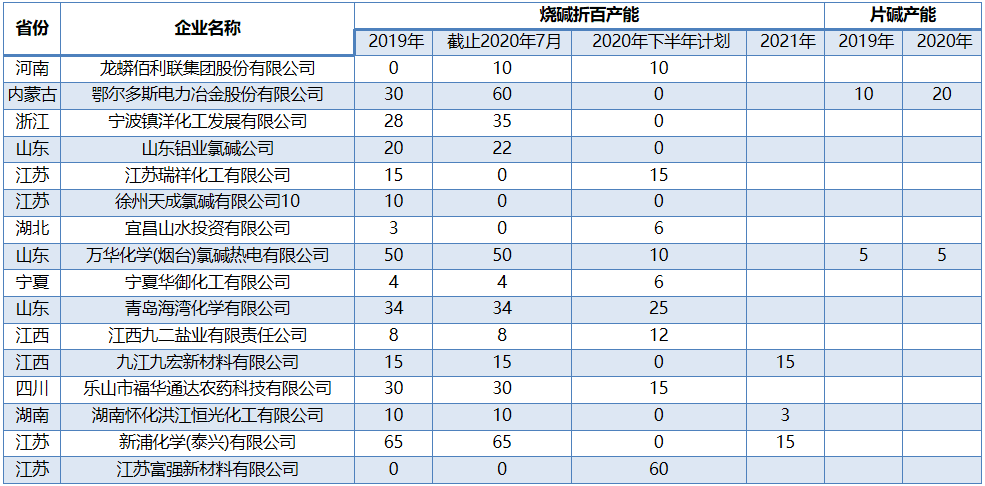 二、2020年燒堿產(chǎn)能變化情況