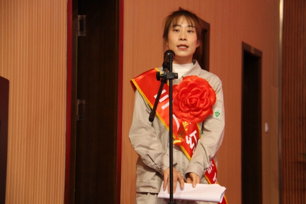 女職工代表?xiàng)钴饺匕l(fā)言。她向集團(tuán)公司對(duì)廣大女職工們的關(guān)愛表示衷心的感謝,為企業(yè)給她們提供實(shí)現(xiàn)自身價(jià)值的廣闊平臺(tái)表示誠摯的謝意。她號(hào)召全體女職工共同努力,勇挑重?fù)?dān)、務(wù)實(shí)苦干,為開創(chuàng)金昱元更加輝煌燦爛的明天踔厲奮發(fā)、不斷前行。