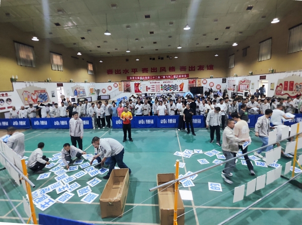 隨著裁判一聲令下,企業(yè)理念拼字比賽迎來激動(dòng)人心的時(shí)刻。各參賽隊(duì)員不急不躁、有條不紊,大家集思廣益、默契配合,在最短時(shí)間內(nèi)準(zhǔn)確拼出“踐行綠色發(fā)展 留駐青山綠水”“山水昱心 共創(chuàng)好未來”“安全就是幸福 安全就是效益”等橫幅。