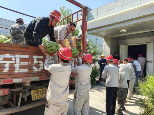 活動(dòng)期間,固原基地工會(huì)深入現(xiàn)場,將防暑西瓜分發(fā)到職工手中,為身處高溫工作環(huán)境的職工送去陣陣清涼。同時(shí)對奮戰(zhàn)在一線的職工致以親切問候,并囑咐大家做好高溫防護(hù),鼓勵(lì)大家在繁忙的工作中積極發(fā)揮勞模精神、工匠精神,為高溫季節(jié)安全生產(chǎn)保駕護(hù)航。