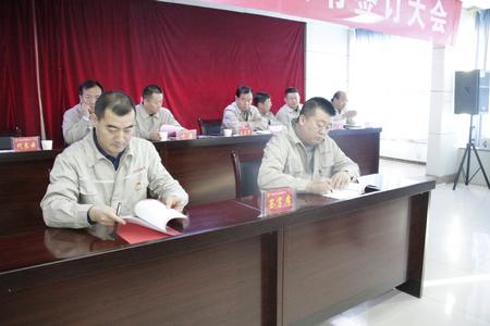 會(huì)上,集團(tuán)公司董事長(zhǎng)代良云與集團(tuán)公司各主管領(lǐng)導(dǎo),各主管領(lǐng)導(dǎo)與分管部門(mén)負(fù)責(zé)人相繼簽訂了2018年經(jīng)營(yíng)管理、職能管理、安全環(huán)保管理目標(biāo)責(zé)任書(shū),各級(jí)管理人員分別簽訂了《依法遵章、廉潔履職承諾書(shū)》。